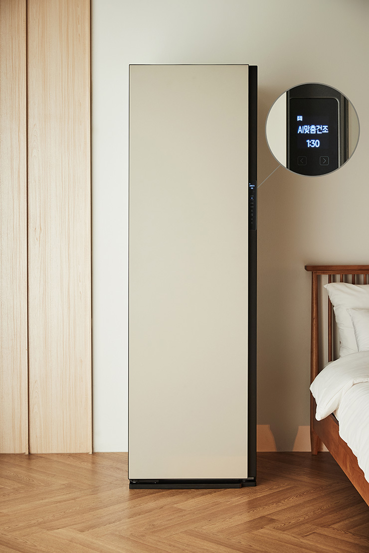흔들리지 않는 에어워시가 미세 먼지를 강력하게 털어내고, UV 냄새 분해 필터로 스팀만으로는 제거하기 어려운 냄새까지 제거한다. 건조와 구김 제거가 한 번에 가능한 AI 섬세 건조로 언제나 새 옷처럼 관리할 수 있다. 취향에 따라 패널 컬러와 소재도 자유롭게 선택 가능하다.