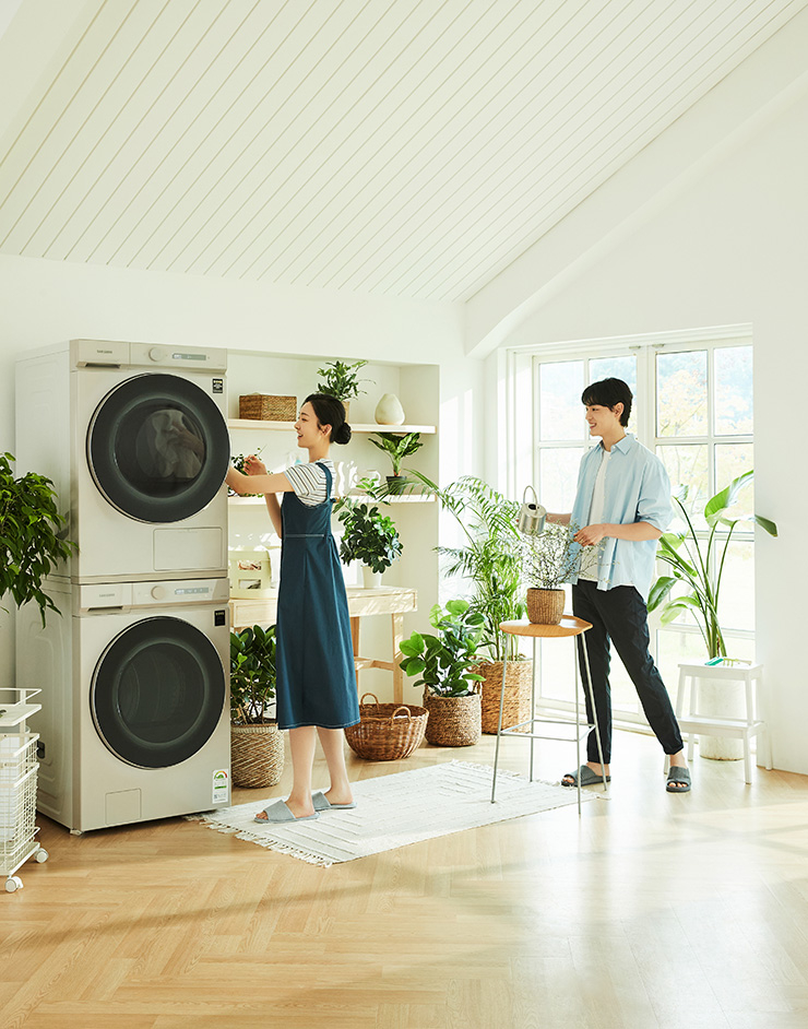 일주일간 입은 옷을 깨끗이 세탁하는 것은 다음 한 주의 시작을 준비하는 루틴 중 하나. 알아서 해주는 BESPOKE 그랑데 AI와 함께라면 빨래도 데이트처럼 즐길 수 있다. 똑똑한 AI 기능이 빨래가 어려운 신혼부부의 고민을 덜어줄 것.