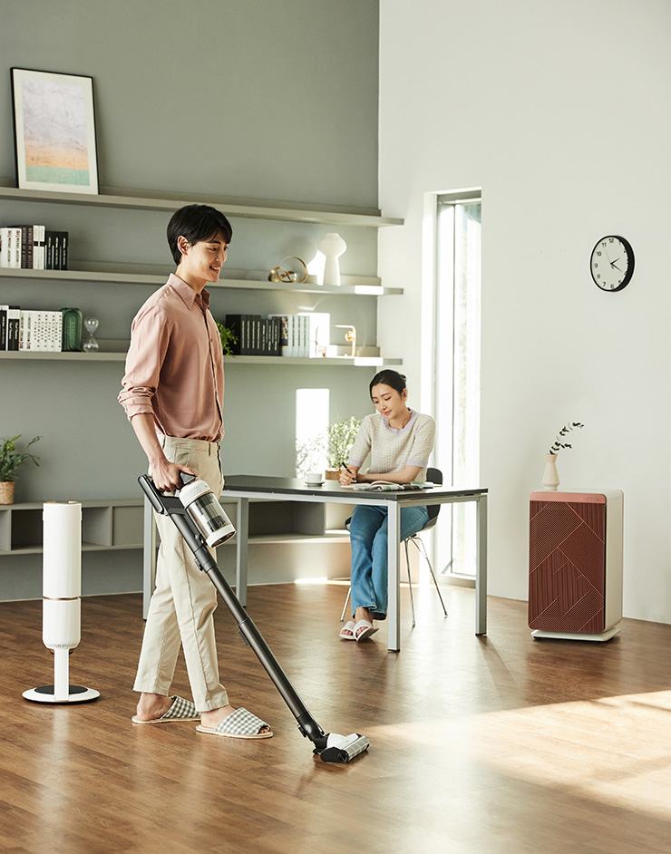 책을 읽고 글을 쓰는 취미를 가진 부부. 서로를 존중하는 부부는 각자가 좋아하는 취미를 온전히 즐기기 위해 가장 먼저 하는 일이 청소다. 공간은 물론 공기까지 깔끔하게 케어하고 싶은 두 사람이 BESPOKE 제트와 BESPOKE 큐브™ Air로 완성하는 쾌적한 작업실 풍경.