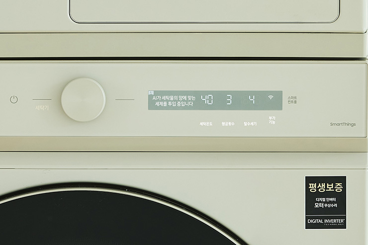 BESPOKE 그랑데 세탁기 AI의 디지털 인버터 모터, BESPOKE 그랑데 건조기 AI의 디지털 인버터 모터 & 컴프레서에 대해 평생 보증 서비스 제공. *세탁기, 건조기 품질 보증 기간 1년 *평생보증은 기한 없는 무상 수리를 의미하며 제품 교환, 구입가 환급에는 적용되지 않음.