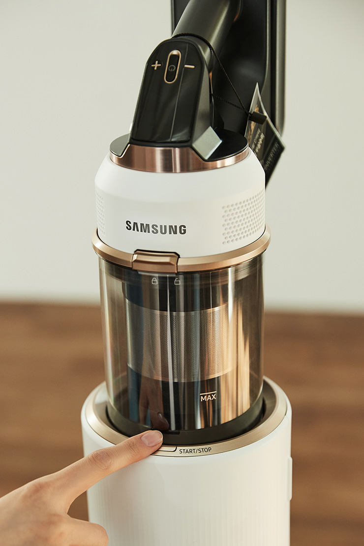 독보적인 자동 먼지 배출 기술로 청소 후 먼지통 비우기까지 말끔하게. 청소기 거치 후 버튼을 누르기만 하면 먼지가 일직선으로 배출되는 구조로 빠르고 효과적으로 먼지를 비워준다. 충전 거치대와 청정스테이션 일체형의 슬림한 디자인으로 신혼집 인테리어에 포인트가 된다.
