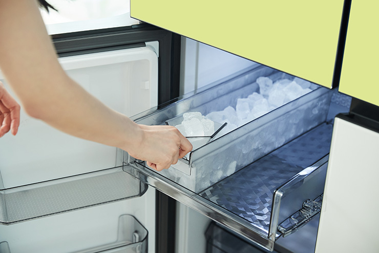 넉넉한 용량의 베버리지 센터와 오토 아이스메이커로 언제든 깨끗하고 시원한 물과 대용량 얼음을 즐길 수 있다. 부부의 취향에 딱 맞는 컬러를 원한다면 3백60개로 구성된 프리즘 컬러에서 원하는 색을 지정해 맞춤 주문 가능하다.