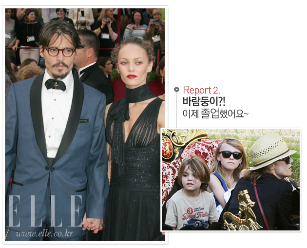 약혼과 파혼만 두 번. 그의 곁을 스쳐 지나간 여자들을 손가락으로 꼽기도 어려울 정도로 바람둥이계의 레전드라 불리던 조니뎁이 확실하게 한 여자에게 정착했는데, 그녀는 바로 프랑스 배우인 바네사 파라디. 조니 뎁은 그녀와 결혼은 하지 않았지만 1998년부터 함께하며 슬하의 1남 1녀를 두었다. 자신이 사랑하는 아이들에게 부모의 결혼한 모습을 보여주고 싶다며 바네사 파라디에게 청혼했지만 결혼 공포증이 있는 그녀에게 거절당했다고 하는데, 어쨌든 바람둥이를 졸업했다는 사실에 주목! |
