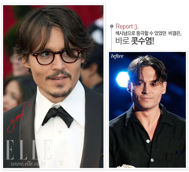 현존하는 배우 중 가장 섹시한 배우 1위로 뽑히기도 했던 조니뎁. 우수에 찬 눈빛과 함께 절묘하게 어우러진 모태콧수염을 가진 그에게도 상상하기조차 싫은(!) ‘민둥콧수염’ 시절이 있었다. 콧수염 없는 그의 얼굴은 길거리에서 쉽게 볼 수 있는 일반인 모습과 크게 다르지 않다. 콧수염으로 섹시함과 동시에 조니뎁만의 스타일을 제대로 얻었다. 만약 그에게 콧수염이 없었다면 섹시스타의 대명사가 될 수 있었을까. 어쨌든, 잘 기른 콧수염하나 열 성형 안 부럽구나. |