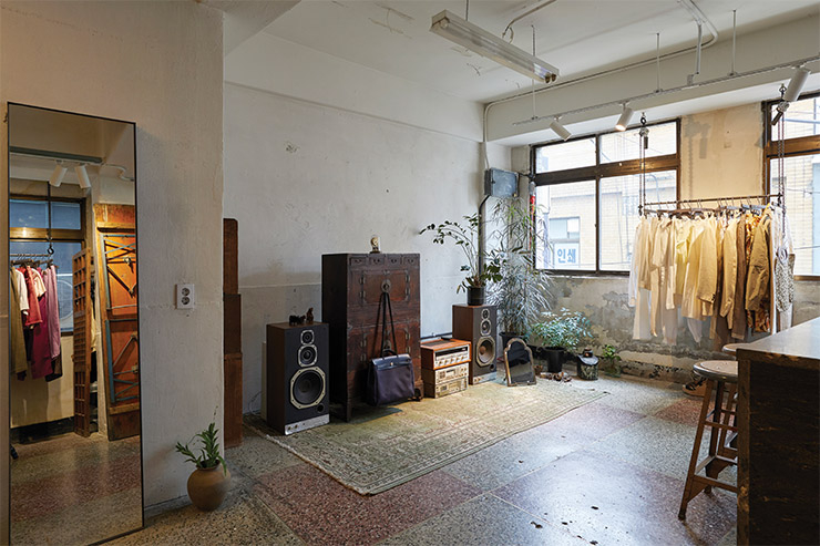 다양한 빛을 품은 원석을 뜻하는 ‘오팔’은 패션 하우스 브랜드에서 MD로 근무했던 윤소영을 포함해 그래픽 디자이너, DJ가 함께 운영하는 빈티지 숍이다. 80년대 맥시멀리즘과 90년대 미니멀리즘을 가로지르는 아이템부터 에르메스, 헬무트 랭, 장 폴 고티에까지 한쪽에 놓인 LP처럼 다양한 장르의 아이템이 함께 숨 쉬는 곳. 성별과 사이즈, 브랜드의 경계를 허물고 컬러와 소재에 따라 디스플레이한 매장은 편견을 없애고 그 안에서 새로운 균형을 찾아가는 모습을 발견할 수 있다. “주인이 바뀔 때마다 새로운 스타일로 다시 가치를 갖는 것이 빈티지의 매력인 것 같아요. 같은 소재나 색으로 과감하게 맞춰 입거나 시대를 초월한 아이템을 믹스매치하면 더욱 풍성한 방법으로 빈티지를 즐길 수 있죠.” 천장 한가운데 여러 개의 원이 겹쳐진 오브제가 보여주듯 오팔 안에서 지속 가능한 패션의 순환이 이어지고 있다. @OPALSEOUL.KR