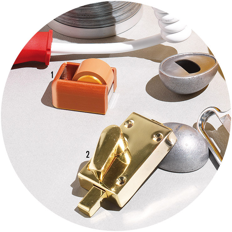 2 빈티지한 매력의 토일렛 도어 록. 레버를 좌우로 움직이는 방식으로 화장실 사용 여부를 구분할 수 있다. 집 안 화장실에서도 프라이버시를 지키고 싶은 이들에게는 필수템. 5만8천원, Beiger Hardware.