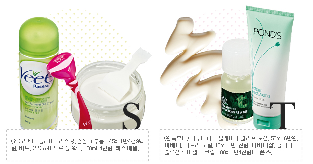 혼자서도 손쉽게 제모를 할 수 있는 셀프 제모 제품도 다양하다. 가령 팔과 다리처럼 면적이 넓은 부위에는 면도나 제모 크림, 제모 시트, 겨드랑이와 비키니 라인처럼 면적이 좁고 예민한 부위는 왁싱, 제모 기기, 족집게 등이 편리할 것. |