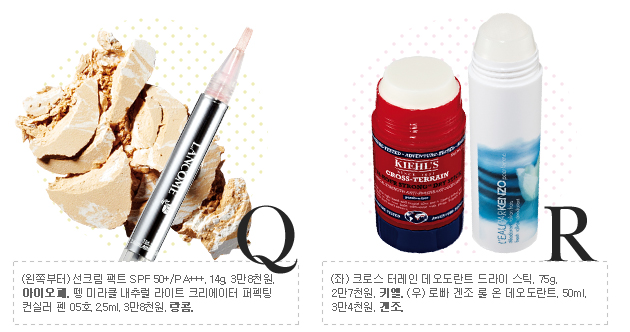 낮 시간이 길어지고 외부 활동이 늘어나는 만큼 수정 메이크업도 잦아지는 계절. 좀 더 빠르고 간편하게, 언제 어디서든 사용할 수 있는 아이디얼한 퀵 뷰티 아이템만큼 요긴한 게 없다. 파우더가 묻어 있는 블로팅 페이퍼, 뭉치고 번진 포인트 메이크업을 지울 수 있는 펜슬 타입 리무버, 선블록과 피부 톤 보정 역할을 한 번에 하는 콤팩트 등이 여기에 해당하는 대표적인 케이스다. |