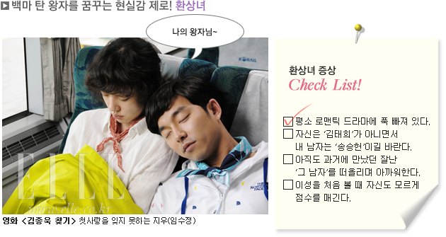 아직도 드라마를 보며 ‘독고진’이나 ‘윤필주’같은 남자를 꿈꾸는가? 그런 스타일이 당신의 남자가 될 확률은 지극히 적다. 먼저 당신의 행동을 쉽게 이해하기 위해 입장을 바꿔서 생각해보자. 자기 주제는 모르고 ‘쭉쭉빵빵’ 미스코리아나 신민아 스타일만 찾는 현실감 제로의 남자들을 봤을 때 어떤 생각이 드는가? 한심할 게 뻔하다. 안타깝게도 그들의 안쓰러운 모습이 어쩌면 당신의 현재 모습과 흡사할지도 모른다. 지금 당신의 가슴에 ‘네 자신을 알아라!’라는 명언부터 품어보자. 그리고 그 몸쓸 환상 속에서 탈출하면 세상에 괜찮은 남자가 이렇게 많았나 싶을 것이다. |