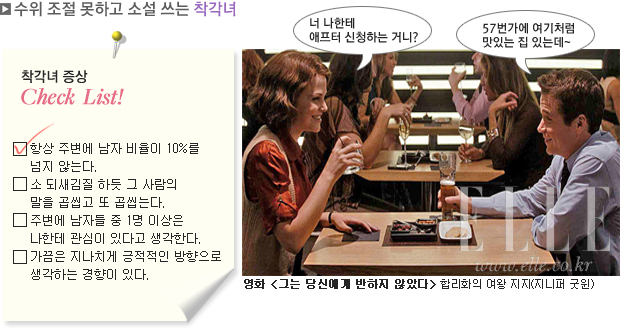 자타공인 외모면 외모, 성격이면 성격, 어디 하나 빠지는 게 없고 소개팅에서 분위기도 화기애애했는데, 왜 애프터는 없는 걸까? 바빠서일까, 아님 튕기는 걸까? 단언컨대, 당신의 착각이다. 문제의 원인은 바로 남녀 간의 심각한 ‘시각 차이’에 있다. 모든 사람들은 자신이 기억하고 싶은 것만 기억한다(영화 <오! 수정>을 통해서도 알 수 있다). 당신은 소개팅 남이 던진 긍정적인 요소(예를 들면 흐뭇한 미소, 다정한 말투 등)만 모아 최상의 시나리오를 각색하고 있다. 그러니 그대로 이루어지지 않으면 실망의 크기는 배가 될 수밖에 없다. 따라서 합리화는 금물이다. 그는 바쁜 것도 아니고 튕기는 건 더더욱 아니다. 당신에게 반하지 않은 것일 뿐이다. |