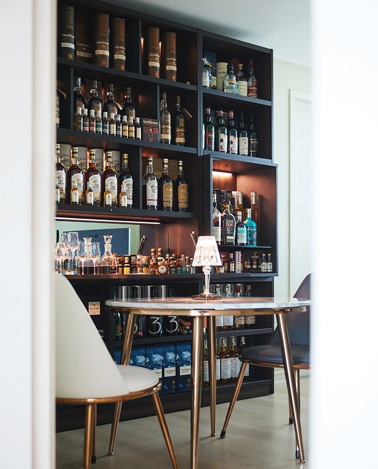 주력 라인업은 싱글몰트 위스키. 보틀 디자인이 예쁘다 보니 인테리어 소품으로도 손색없다. 목돈이 생기면 비싼 위스키를 사는 습관이 있는데 발베니 튠 1509와 글렌드로낙 CS 배치 시리즈, 글렌모렌지 시그넷이 그렇게 모인 것들. 마실 때마다 당시의 기쁨을 느낄 수 있어 좋다.