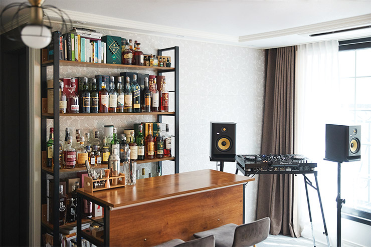 술만 번지르르하게 있는 것보다 좋아하는 음악까지 즐길 수 있는 캐주얼한 분위기의 라운지 바를 원했다. 공간 한쪽에 디제잉 장비를 둔 이유다.
