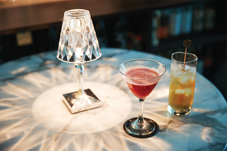 탈리스커 10년과 탄산수를 1:3 비율로 넣은 깔끔한 하이볼. 아몬드 향이 나는 아마레토와 위스키로 만드는 갓파더도 즐겨 찾는다. 조니 워커 블루 라벨 같은 고급 위스키를 베이스로 쓰는 ‘플렉스’는 홈 바라서 가능하다.
