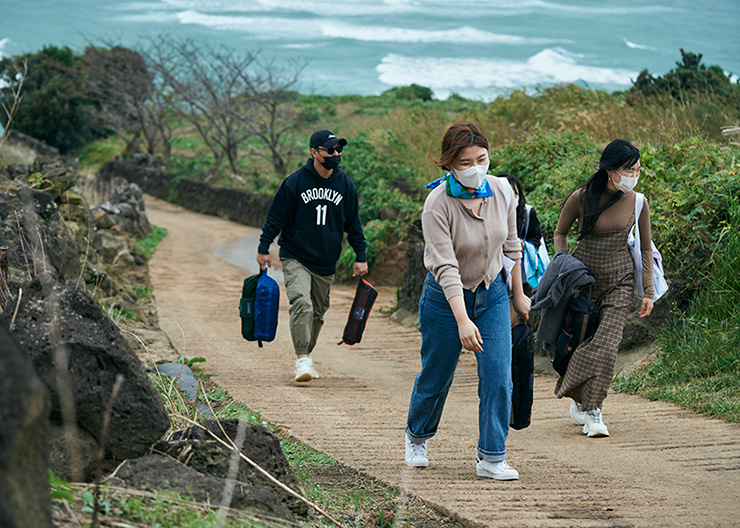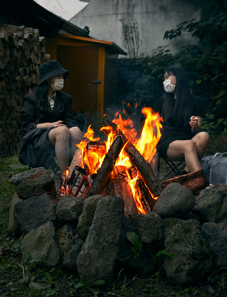 일상에서 각자의 방식으로 환경 보호를 실천하는 사람들. 제주의 자연을 느끼며 의미 있는 일을 하고 싶다면 '불멍하고 제주바다 살리기'를 추천한다. 삼나무 향과 타닥타닥 장작 타는 소리가 어우러진 곳에서 피어오르는 연기를 멍하니 바라보고 있자면 긴장되어 있던 몸과 마음을 차분히 다스릴 수 있다. 게다가 제주시 근처 이호테우 해수욕장에서 하는 '제주바다 플로깅'을 통해 바다 보존을 위한 의미 있는 일을 같이 참여해 볼 수 있다. ELLExFrip 불멍하고 제주바다 살리기
