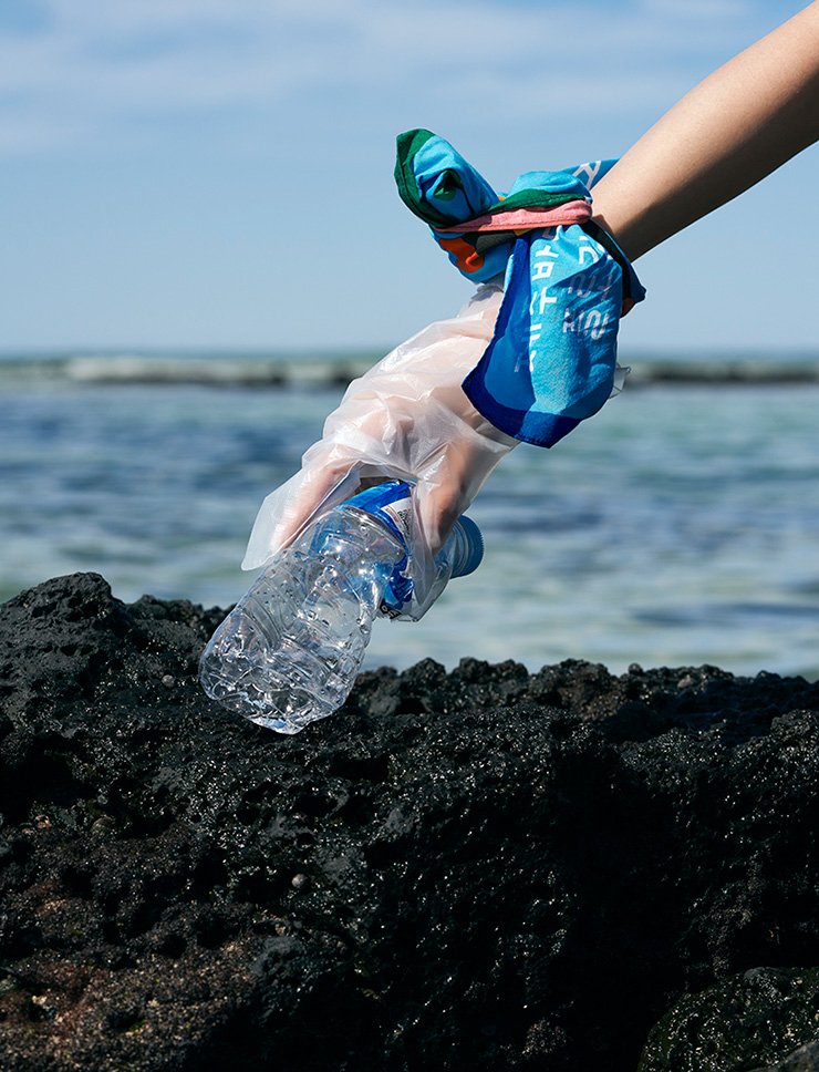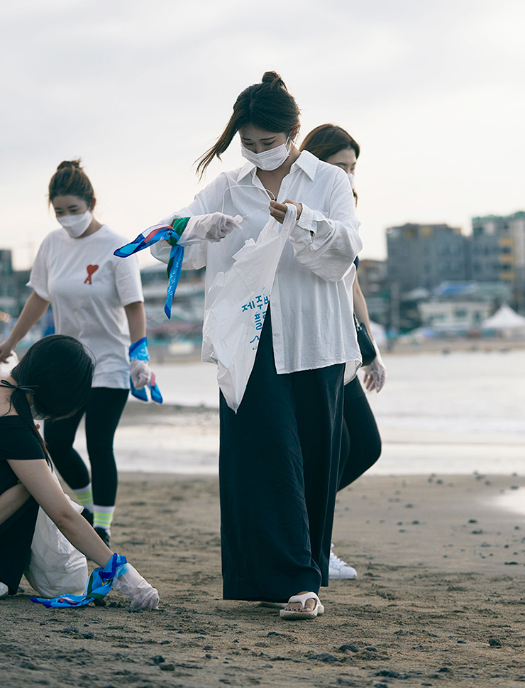 지구 곳곳에 버려진 쓰레기들을 주우며 달리는 자연 보호 활동을 일컫는 ‘플로깅(Plogging)’. 환경을 생각하는 착한 운동 플로깅은 '이삭을 줍는다(Plocka Upp)'라는 뜻의 스웨덴어와 영어 단어 ‘달리기(Jogging)’의 합성어로 조깅을 하면서 거리의 쓰레기를 줍는 활동이다. 이미 국내에서는 배우 김혜수, 이시영, 박진희 등 환경을 생각하는 연예인들의 활동으로 유명하며 북유럽을 중심으로 확산되어 전 세계적인 인기를 얻는 환경 운동으로 뜨거운 반응을 얻고 있다. <엘르> 역시 롤렉스와 함께 바다 생태계를 지키기 위한 <제주바다 플로깅> 캠페인을 기획했다. 환경을 위한 작은 움직임, <제주바다 플로깅>
