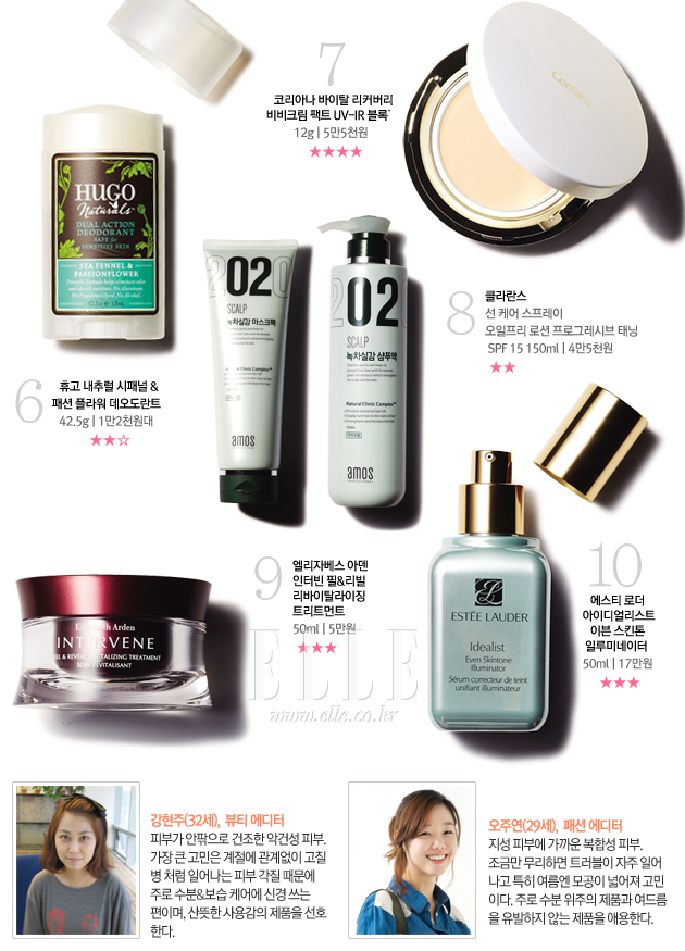 2 붉어진 피부, 모공, 번들거림, 잡티, 수분 부족 등의 여름철 피부 고민을 해결해주는 신개념 세럼. 가장 인상적인 부분은 제품 손상을 막는 특수 패키지와 뭉글뭉글한 젤리 타입 텍스처다. 사용 내내 신기한 느낌이 들지만 발림성과 흡수력이 좋다고는 말할 수 없을 듯. (수영) 에어컨 바람 때문에 피부의 수분 부족을 걱정했는데 아이스 코트를 바르니 피부에 물벽이 형성된 듯 한결 촉촉해졌다. (선영)