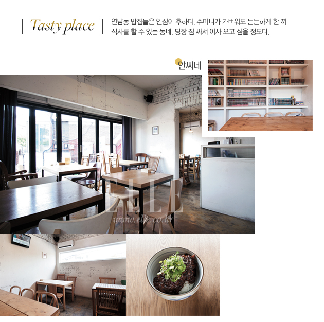 재래시장 앞에 로스터리 카페가 있고, 다가구 주택들이 빼곡한 골목 어귀에는 크로크 무슈를 제대로 구워내는 프렌치 비스트로가 있다. 세탁소 옆 아트 갤러리. 허름한 기사식당과 세련된 브런치 레스토랑이 무심하게 뒤섞여 하나의 커다란 아트워크를 만들어내는 곳. 판이하게 다른 문화가 공생하는 이곳은 홍대 앞 비무장지대, 연남동이다.