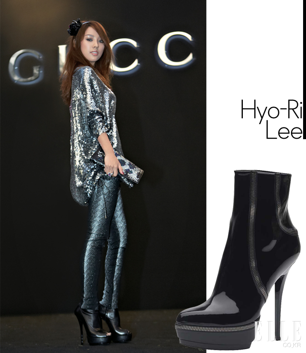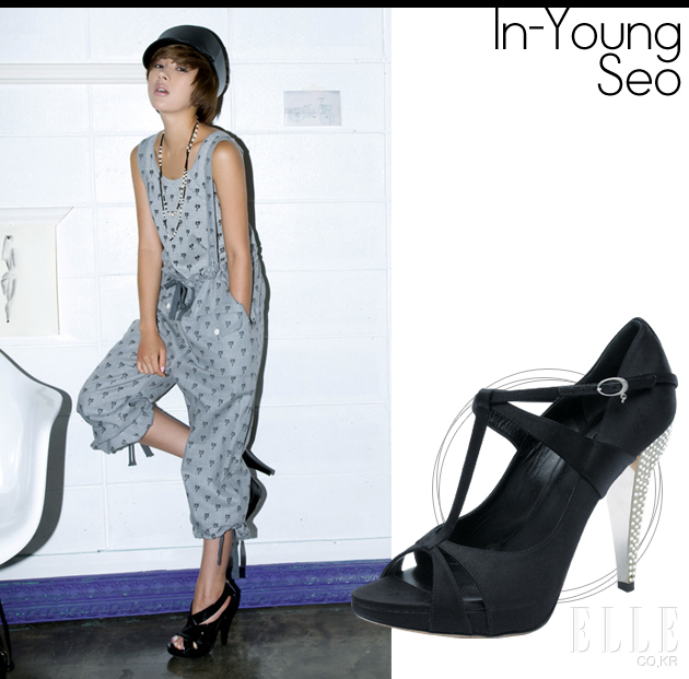 디올 스트라이프라인의 플랫폼 샌들. 라인의 이름처럼 페이턴트 소재의 가죽이 스트라이트 패턴으로 발등 전체를 감싸주고 있는 독특한 디자인의 샌들이다. 힐12cm, 가격 미정, 디올