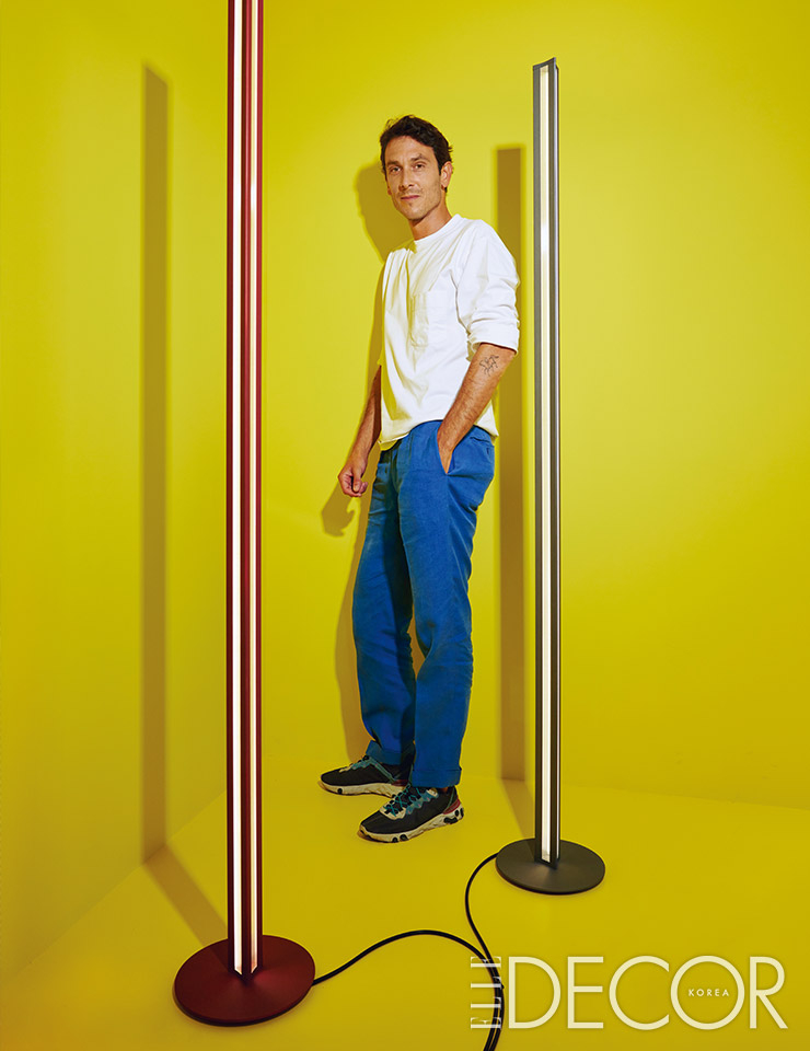 이탈리아 조명 브랜드 포스카리니(Foscarini)와 함께 플로어 램프 ‘키아로스쿠라(Chiaroscura)’를 디자인한 가구 디자이너 프란체스코 메다.