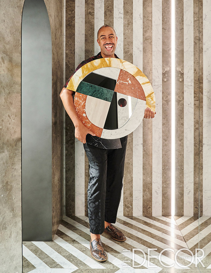 천연석을 전문으로 하는 이탈리아 리빙 브랜드 살바토리(Salvatori)와 함께 벽 거울 ‘프랜즈 앤 네이버스 미러스(Friends & Neighbors Mirrors)’를 제작한 스테판 버크스.
