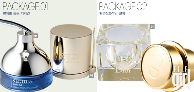 사용 편의를 돕는 디자인 메이크업 제품에 비해 스파츌러나 브러시가 필요한 자(Jar 단지) 타입의 스킨케어 제품은 그렇지 않은 경우가 많았다. 들어있다 해도 별도 포장되어 있어 잃어버리거나 더러워지기 쉬웠던 단점을 보완한 것이 바로 SK-Ⅱ와 숨의 특수 패키지. 크리니크와 라네즈의 오토 콤팩트 케이스 역시 비슷한 케이스라 할 수 있다.
