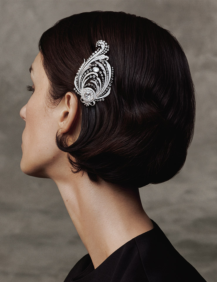 “아카이브 속 149개의 디자인을 21세기로 옮겨와 오늘날의 마하라자와 왕비인 마하라니를 위해 재창조하고 싶었습니다. 자신의 개성과 스타일을 표현하려는 모든 남성과 여성을 위해서 말이죠.” 그녀는 현대적 감각으로 재해석한 ‘뉴 마하라자’ 컬렉션을 위해 터번 장식과 연꽃, 웨딩 브레이슬렛 등 고대 인도에서부터 전해 내려오는 상징적 요소와 돌에 문양을 새기는 예술인 글리프틱(Glyptic) 같은 고대 기법을 주얼리 디자인에 적용했다. 특히 부핀데르 싱이 주문했던 에메랄드 네크리스에서 착안해 탄생한 네크리스는 컬렉션 중 가장 화려한 존재감을 자랑하는 작품인데, 총 40캐럿에 달하는 콜롬비아산 에메랄드와 196개의 바게트 컷 에메랄드를 세팅했으며 중앙의 모티프를 떼어내 브로치로도 활용할 수 있는 것이 특징이다. 또 클레어 슈완은 당당하고 기품 있는 현대의 마하라니를 위해 동양적인 단색화와 연꽃, 인도 여성이 결혼할 때 착용하는 전통 장신구인 ‘추리얀(Churiyan)’ 브레이슬렛, 20세기 초 인도의 마하라자가 즐겨 착용하던 백로 깃털 장식 터번을 주얼리로 재창조하는 등 다각적 접근으로 하우스의 유산을 재해석했다. 이로써 클레어 슈완은 자신만의 현대적 창의성과 부쉐론이 지켜온 유서 깊은 역사를 결합한 또 하나의 하이 주얼리 컬렉션을 완성했다.