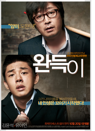 고양이 세수: 가난하고 공부도 못하는 문제아지만 싸움만은 최강자인 완득(유아인)에게 소원이 하나 있다. 바로 담임 동주(김윤석)가 없어지는 것이다. 낮밤을 가리지 않고 남의 삶을 신경쓰는 동주로 인해 완득이는 괴롭다.