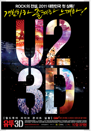 고양이 세수: 아일랜드 출신의 4인조 록그룹 'U2'의 '버티고' 월드 투어를 3D 카메라로 촬영했다. 미국에서 2008년 1월 상영이 시작됐다. 리더 보노와 디 에지(기타), 래리 멀렌 주니어(드럼), 아담 클레이턴(베이스)이 함께 한다.