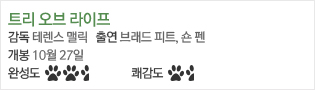 고양이 기지개: <뉴 월드> 이후 6년 만이다. 은둔자 테렌스 맬릭이 영화를 만들었다는 것만으로 이미 '사건'이나 다름 없으니, 영화광들 사이에서 화제가 되는 것은 당연하다. 멜 깁슨의 <패션 오브 크라이스트>가 예수에 대한 잔인한 폭력으로 인해 신자들에게 '아멘'을 외치게 만들었다면, <트리 오브 라이프>는 스스로 '아멘'을 노래한다. 노골적으로 종교적 믿음을 전파하지만 가족에 관한 이야기이니 마음 한 구석이 따뜻해진다. 공룡까지 등장시켜 '천지창조'의 신비를 보여주는 것은 당혹스럽지만, 아름다운 영상에 빠지다 보면 시간이 거꾸로 흘러도 모를 정도다.