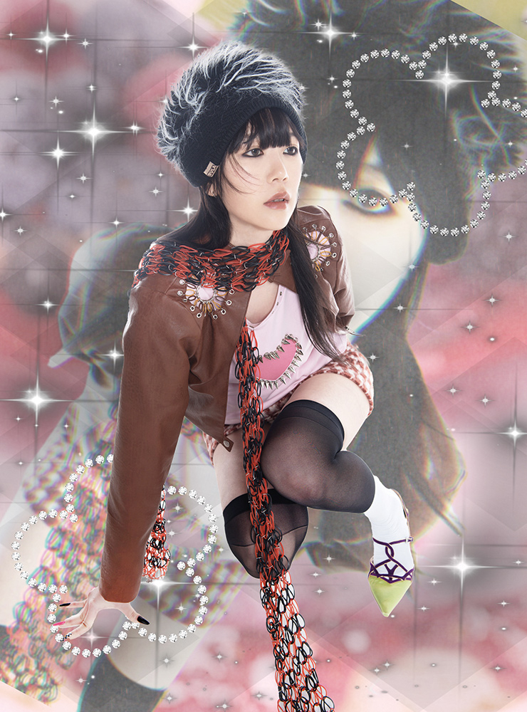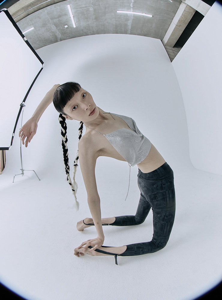 ‘Neo-Seoul’이라는 수만 가지 욕망이 반영된 세계에서 태어난 그녀가 시간을 보내는 장소들을 떠올리며 컬렉션을 완성했다. 시작은 미국 쇼핑몰에 있는 포토 스튜디오에서 착안했는데, 스티커 사진기가 유행이었던 2000년대의 내 학창시절과도 맞닿아 있다.