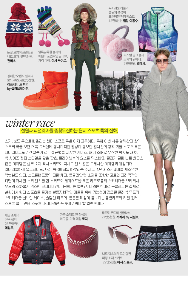 리얼과 페이크 사이를 줄타기하는 모피의 매력. 설원과 리얼웨이를 동시에 만족시키는 윈터 스포츠룩. 당신의 겨울을 위한 두 가지 제안!