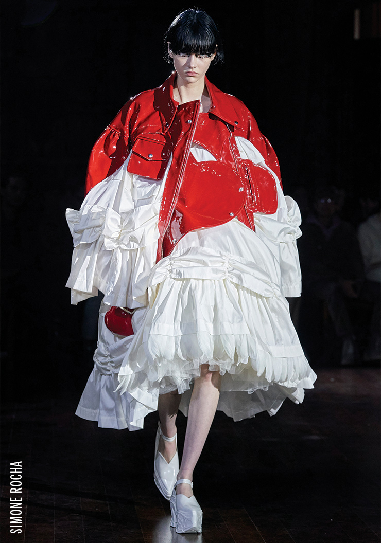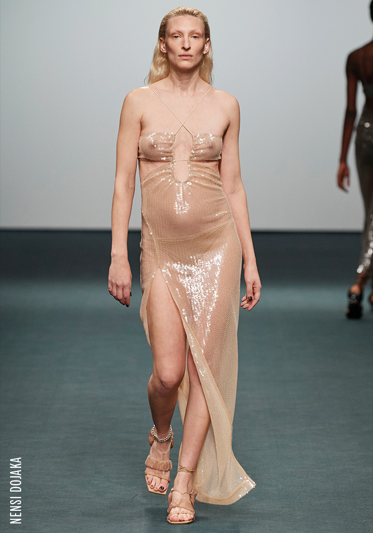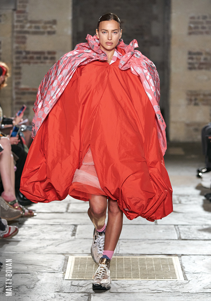LVMH 프라이스를 거머쥔 런던의 기대주 넨시 도자카의 쇼에는 반가운 얼굴 매기 마우어가 등장했다. 살짝 살이 오른 듯한 모습이지만 자세히 보니 시스루 드레스 사이에 봉긋하게 튀어나온 배를 감지할 수 있었다. 쇼장은 웅성거리기 시작해 카메라 셔터 소리가 빠르게 터져나왔다. 곧 엄마가 되는 매기 마우어의 가장 아름다운 런웨이 모습이 포착됐다. DOUBLE EFFECT