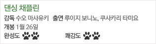 고양이 기지개: 잠깐, <댄싱 채플린>은 극 영화가 아니라는 사실부터 체크할 것! 참 세월도 빠르다. 15년이 흘렀다. <쉘 위 댄스>에서 마이를 연기하던 쿠사카리 타미요를 다시 만난다(마사유키 감독의 아내이기도 하다). 어느덧 오십 살을 넘은 그녀는 채플린을 연기하는 루이지 보니노와 <댄싱 채플린>에 도전한다. 이들이 준비하는 과정을 담은 다큐멘터리가 1막, 발레극을 영화적으로 재구성해 촬영한 발레가 2막이다. 댄스 마니아들이라면 마사유키와 프티의 인터뷰만(두 감독의 힘겨루기?)으로도 즐거울 수 있다. 프티의 발레를 볼 수 있는 것만으로 황홀하다.