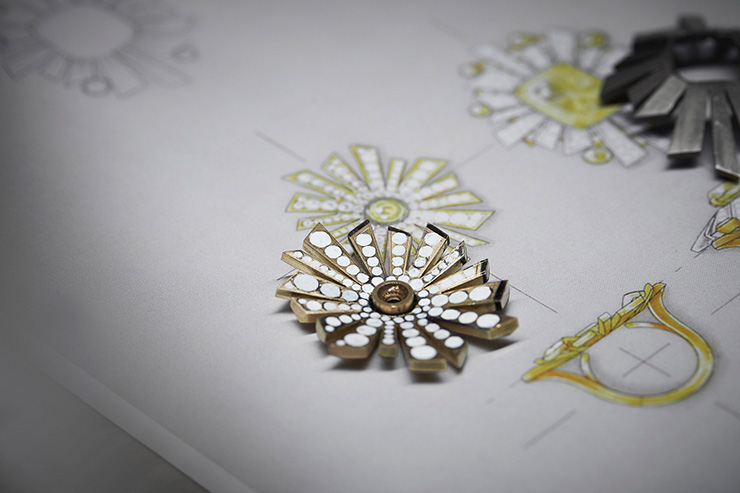 화이트 골드와 옐로우 골드에 화이트 다이아몬드와 옐로우 다이아몬드를 세팅한 솔레이 19 웃트 네크리스는 22.10캐럿에 달하는 놀라운 쿠션 컷 팬시 비비드 옐로우 다이아몬드가 상징적이다. 옐로우 다이아몬드를 올린 태양 모티프는 네크리스, 링, 또는 브로치로 착용 가능하다. 모티프를 네크리스에서 분리해서 다이아몬드 세 줄의 네크리스만 따로, 파베 세팅한 태양 모티프를 링에서 분리해서 링만 따로 착용할 수 있다.