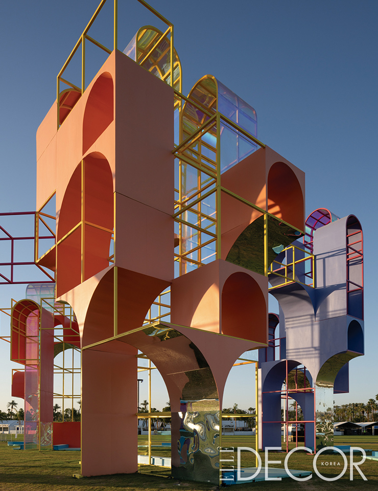 코첼라 밸리 뮤직 앤 아츠 페스티벌 2022를 만끽하는 이들에게 색다른 재미를 불어넣은 특별한 놀이터는 알레산드로 오르시니(Alessandro Orsini)와 닉 로즈보로(Nick Roseboro)가 이끄는 디자인연구사무소 ‘아키텐션스(Architensions)’의 디자인. 다양한 형태와 물성을 지닌 재료를 모듈식으로 결합한 철골 타워다. 수직 격자에 적용된 마젠타, 노랑, 청록 등의 색상이 어린 시절의 생생한 놀이 경험을 소환한다. THE PLAYGROUND