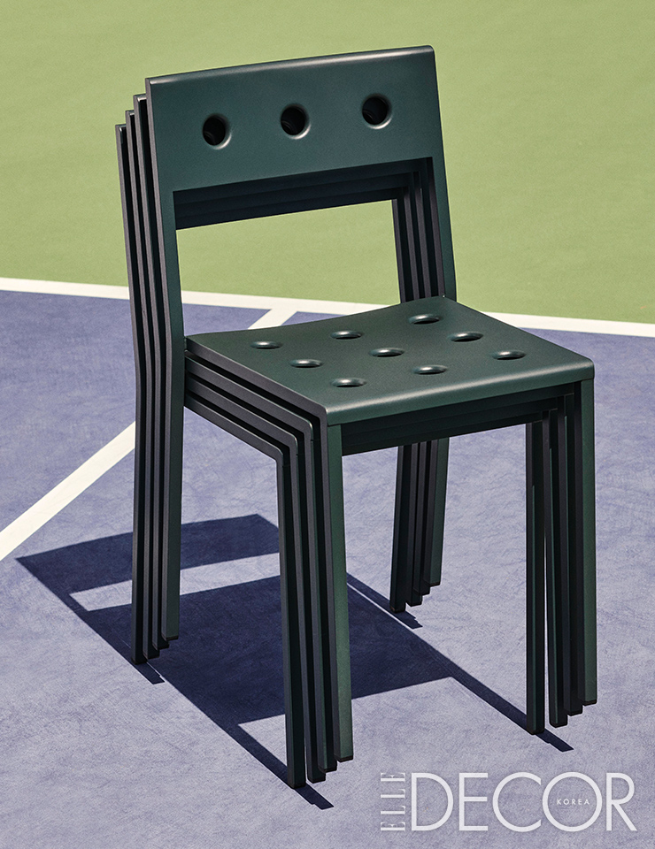 로낭 & 에르완 부홀렉의 간결하고 시적인 디자인을 입은 헤이(Hay)의 발코니 체어. 시트와 등받이에 있는 여러 개의 구멍은 구조를 강화하면서 독특한 인상을 남긴다. 블록을 쌓아 만든 것처럼 네모반듯한 디자인은 우아하고 기능적이다. BALCONY CHAIR