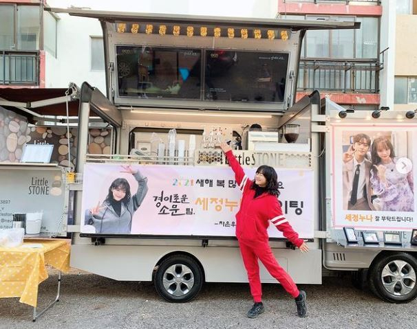 김세정이 드라마 <여신 강림> 촬영장에 보낸 커피차 현수막에도 재미난 문구가 쓰였었죠. 당시 주연을 맡은 차은우에게 "야 동민아, 힘내서 찍어라 (멋진 척 그만하고)"라고 멘트를 보낸 건데요. 차은우에게 '멋진 척 그만하라'는 말을 누가 할 수 있을까요. 글만 봐도 김세정의 목소리가 음성 지원 되면서 찐친 모먼트와 쿨함이 느껴집니다. 차은우 또한 같은 시기, <경이로운 소문>에 출연 중이었던 김세정에게 커피차를 보내며 응원했습니다. "세정 누나 잘 부탁드립니다"라는 현수막 문구로 많은 이들을 설레게 하기도 했습니다. 이들의 우정은 서로의 SNS 곳곳에서도 엿볼 수 있었는데요. 드라마를 방불케 한 워터파크 '심쿵' 스토리의 비하인드는 사실 절친 엔딩이었네요.