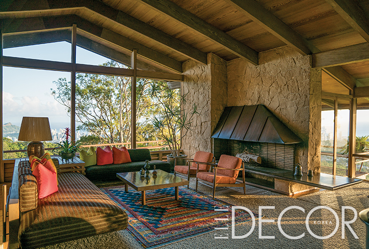 “건축가는 사회학자이면서 변호사이고, 심리학자여야 합니다. 인간의 본성을 알아야 하죠.” 오시포프의 이 같은 건축철학과 독창적인 디자인 세계를 또렷이 읽을 수 있는 릴제스트랜드 하우스는 지난해 말 건축주와 그의 자손에 이르기까지 개인 저택으로 사용된 시대를 마치고, 재단을 설립하면서 공공에 개방됐다. 콘크리트 블록으로 지은 옹벽과 나무 프레임을 토대로 1952년에 완공된 이 집에서 가장 눈에 띄는 부분은 우아한 삼각형의 랩 어라운드 데크. 2층 거실에서 돌출된 이 데크에 서면 호놀룰루의 다이아몬드 헤드와 펀치볼의 국립태평양기념묘지까지 내려다보이는 탁 트인 전망을 즐길 수 있다. 두 개의 테라스와 간이 차고, 수영장을 지닌 기다란 형태의 집을 지을 때 건축가에게 릴제스트랜드 부부가 제시한 까다로운 요구사항보다 더욱 과제가 된 것은 변화무쌍한 일일 기상조건이었다. 하루에도 몇 번씩 햇빛 ‘쨍’한 날씨와 비바람이 오가는 탄탈루스 언덕 위에 짓는 집은 자주 내리는 소나기로부터 잘 보호되면서도 시원한 바람을 끌어들일 수 있어야 했다.