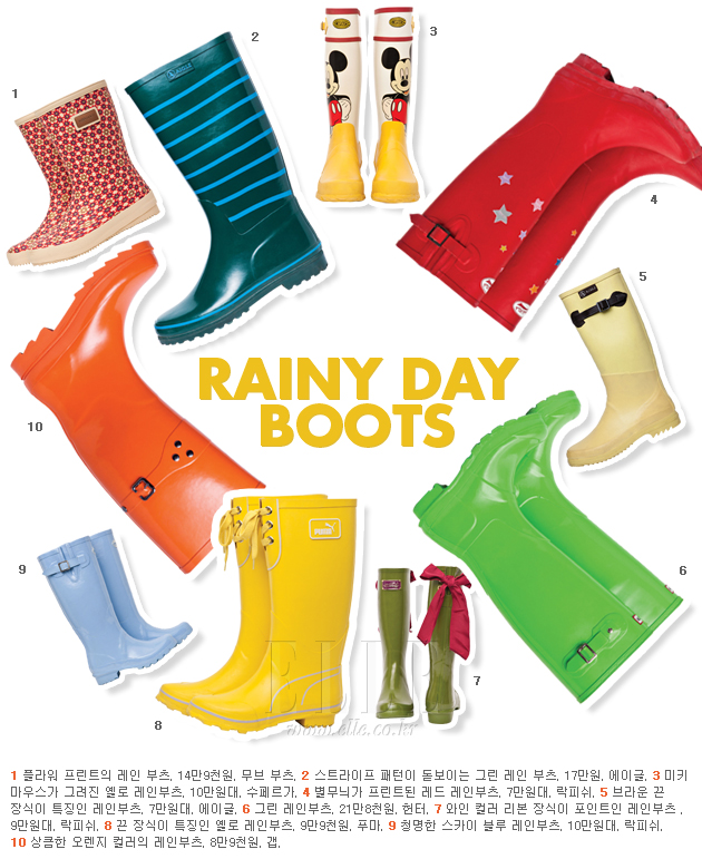 여름의 한가운데 촉촉한 빗방울이 내리기 시작한다면, 이제 레인부츠를 신고 폴짝 뛰어볼 차례!, 여름날의 뜨거운 햇살을 따라 청명한 바다로, 푸른 산으로 떠나게 해줄 웨지 샌들.