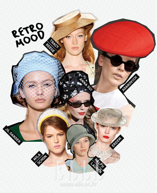 RETRO MOOD 오트 쿠튀르풍의 과감한 모자 디자인이 풍년을 이뤘던 그때 그 시절을 연상케 하는 레트로 무드의 모자가 런웨이를 수놓으며 차세대 잇 아이템으로 낙점된 듯하다. 1920년대의 대표 아이콘인 종 모양의 클로셰 모자를 대거 선보인 랄프 로렌과 여성스러운 칵테일 드레스에 매니시한 레더 소재의 크로셰를 매치한 디올 쇼를 참고해 서로 다른 소재의 믹스 매치로 모던한 스타일을 연출해보자. 서머 비니로 단번에 패션 피플들의 마음을 사로잡은 질 샌더처럼 빈티지 무드의 베일 장식으로 믹스 매치를 즐긴다면 하이패션을 캐주얼하게 즐길 수 있을 듯. 뜨거운 태양이 작열하는 여름, 빈티지 무드의 모자를 머리에 쓰고 피크닉을 떠나는 것은 어떨까? |