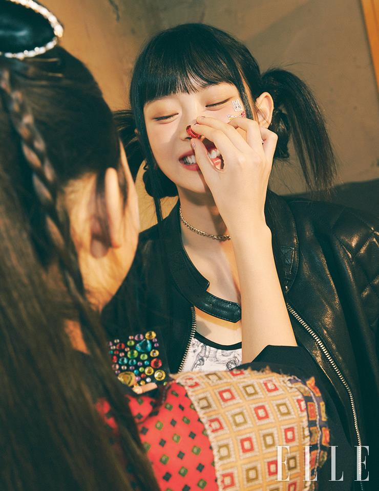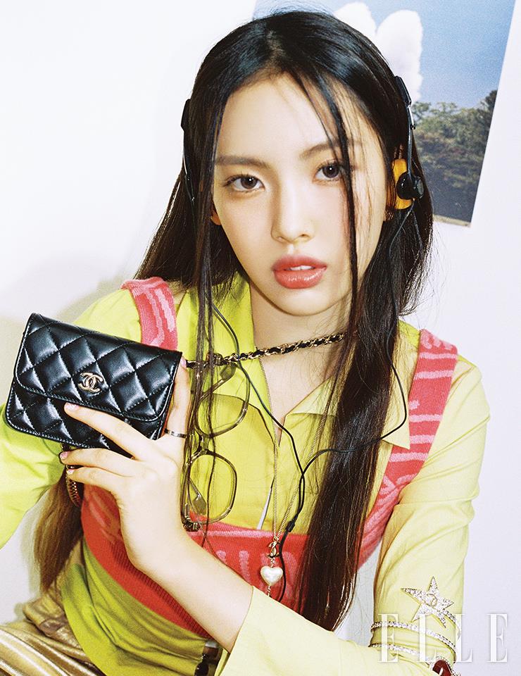인형처럼 귀여운 하니의 눈매를 그대로 살리기 위해 레 베쥬 헬시 글로우 내추럴 아이섀도우, 텐더를 얇게 터치하고, 장밋빛의 루쥬 알뤼르 렉스트레, 828호를 발라 세련미를 더했다. 사용 제품은 모두 Chanel. 피케 티셔츠는 Fred Perry. 사각 셰이프의 미니 백과 이어링, 뱅글은 모두 Chanel. 스커트와 삭스, 스니커즈는 모두 스타일리스트 소장품.