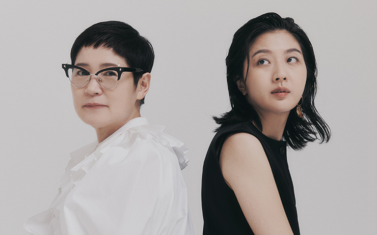 김미란이 입은 니트는 Atcorner. 스커트는 Repetto. 권서영이 입은 셔츠는 Vintage Fendi. 재킷은 Recto. 팬츠는 Eudon Choi. 이어링은 Paulbrial.