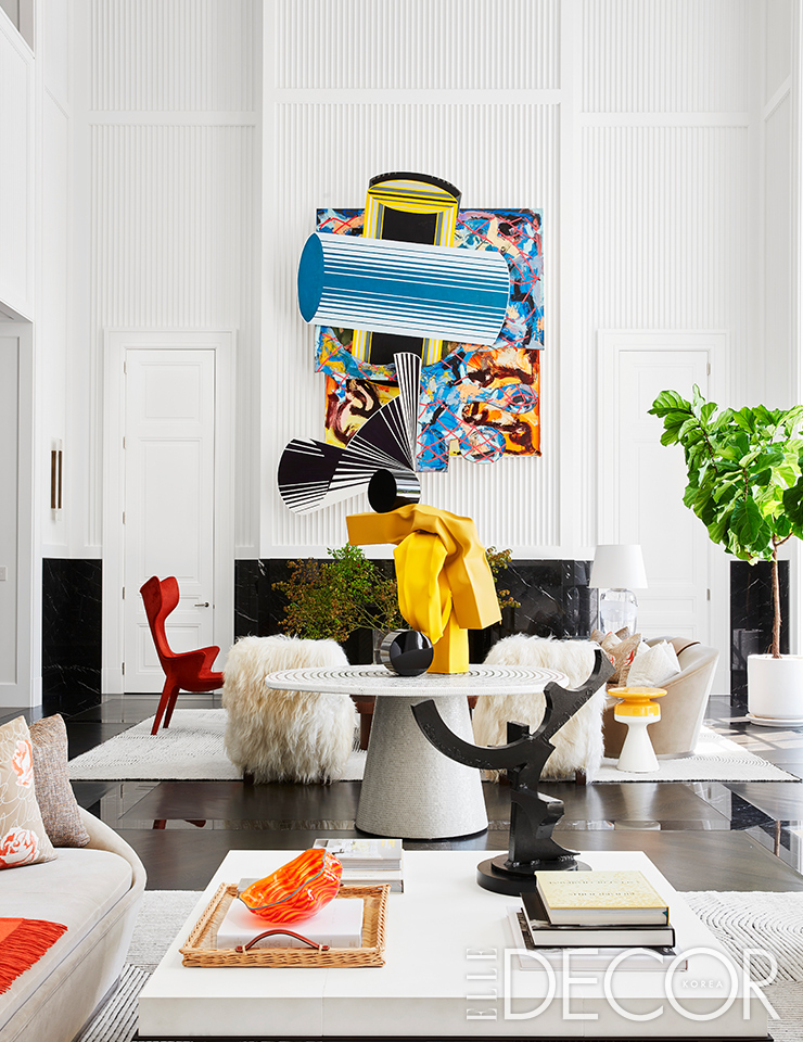 아무리 위대한 인테리어 디자이너라도 무려 930평에 이르는 대저택을 아늑한 안식처로 탈바꿈시켜 달라는 미션을 받으면 막막하지 않을까? 게다가 층고가 7m에 달하는 이 집은 박물관에 버금가는 예술품 컬렉션과 전용 하키 경기장까지 있어 소박하고 편안한 공간으로 탈바꿈시키기엔 지나치게 럭셔리하다. “사랑하는 사람들과 함께 행복하게 살고 싶은 개인적인 로망을 위해 이 집으로 이사를 왔어요.” 팬데믹 직전, 100명이 넘는 사람들과 만찬을 즐기고, 파자마 파티를 위해 맞춤 설계한 공간에서 아이의 생일 파티를 열어줄 꿈에 부풀어 이사를 결심한 저택의 안주인이 말했다. 타인과의 교류를 즐기는 타고난 엔터테이너인 그의 성향에 맞춰 뉴욕 북부의 소도시 스카스데일에 자리한 이 집은 완벽한 환대 공간으로 거듭날 운명이었다. 저마다 취향을 지닌 모든 방문자를 만족시키면서 부부와 세 아이, 반려견 두 마리에겐 더할 나위 없이 아늑한, 집과 리조트를 아우르는 완벽한 이상향으로 말이다.
