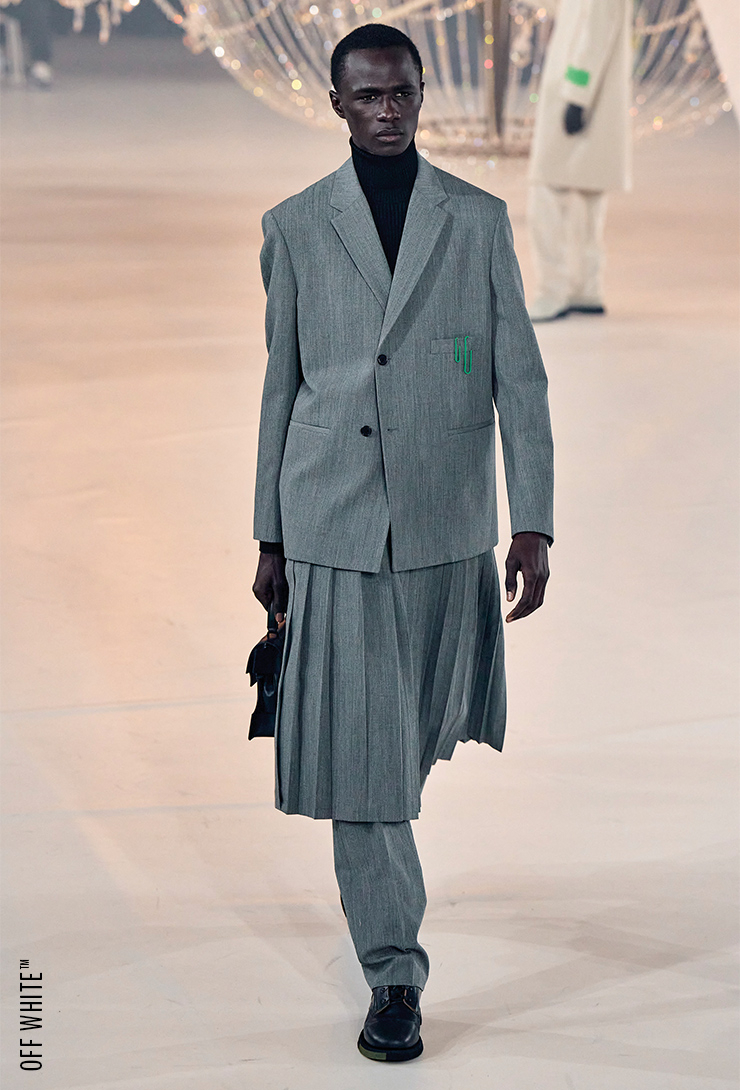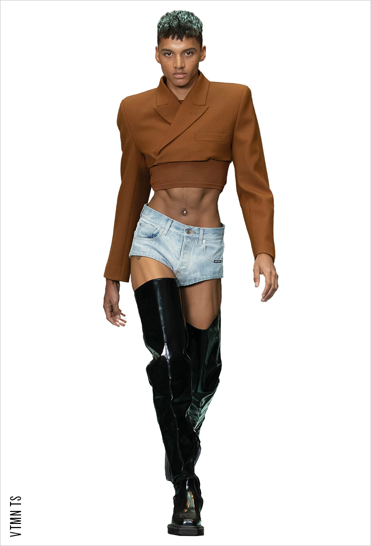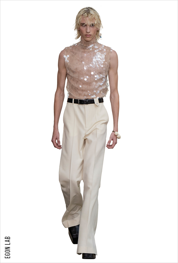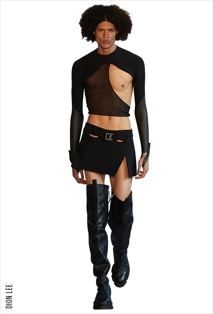 자신을 남성복 혹은 여성복 디자이너라 부르지 말고 ‘인간 디자이너’로 불러달라고 요청할 정도로 성별에 의미를 두지 않는 그녀이기에 가능한 컬렉션이 아닐까? 또 실험적인 컬렉션을 선보이는 디온 리는 2022 F/W 컬렉션에서 특유의 섹슈얼한 피스로 남성의 보디라인을 드러냈다. 레이스 글러브, 오프숄더 니트, 크롭트 후디드 티셔츠, 미니스커트 등으로 꾸민 런웨이 속 모델들은 각자의 성에 맞춘 역할을 하기보다 그저 디온 리의 룩을 입은 모델 역할에 충실했다. <이상한 나라의 앨리스> 속 판타지에서 영감을 받은 이곤 랩은 반짝이는 스팽글 소재, 보디라인이 드러나는 쇼트팬츠를 입은 모델들로 런웨이를 꾸몄고, Y 프로젝트는 코르셋이 연상되는 관능적인 탱크톱에 데님을 매치한 룩으로 남과 여의 경계에 선 듯한 과감한 룩을 선보였다. 치마를 입은 남자, 수트를 입고 남자인 척하는 여자를 그려온 그간의 젠더리스 룩과는 비슷한 듯 묘하게 다른 제3의 분위기를 풍긴다. 남과 여가 아닌, 그냥 ‘인간’으로서 패션을 받아들일 시기를 맞은 것이다.