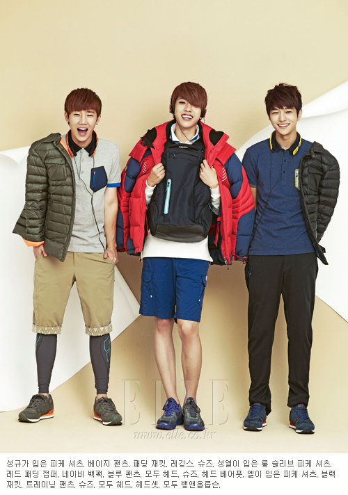 SUNG KYU ‘추격자’로 컴백할 때 헬리콥터를 타고 5개 도시를 돌며 쇼케이스를 했다. 헬리콥터는 처음 타는 거라 좀 무섭긴 했지만 정말 스펙터클한 하루였다. 여러 도시 팬들을 만나 재밌었다. ‘불후의 명곡’에서 선배 김종민과 비슷한 면을 보여 웃음을 주기도 했다. 사실 그런 의도는 전혀 없었다. 대선배님들 앞에서 노래하려니 떨리고 긴장돼서 말을 더듬었던 거다. 근데 그 이미지가 없어지지 않더라. 엠넷 ‘서열왕’에서 “이것만큼은 1위 할 자신 있다!”라고 외칠 수 있는 분야는? 잠자기. 데뷔 3년 차, 아직 카메라가 어색한 멤버는 누구? 성종이. 카메라 앞에선 굉장히 방송적으로 바뀐다.