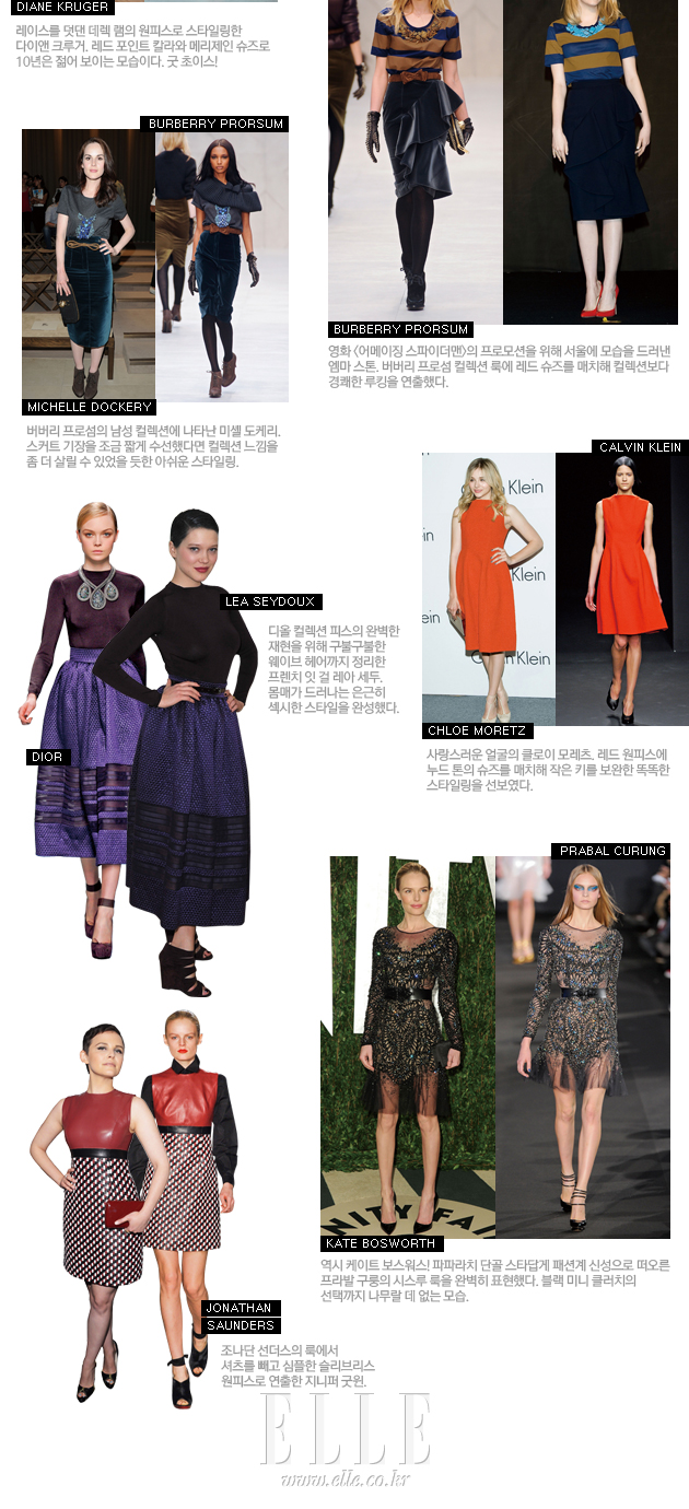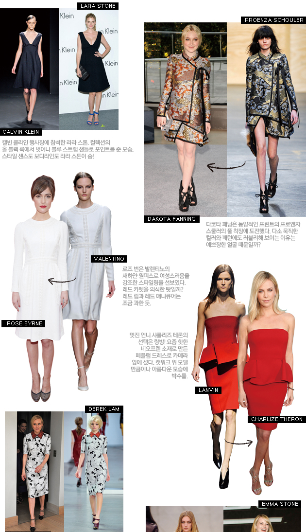 컬렉션이 끝나고 아직 모델의 체온이 남아 있는 갓 나온 컬렉션 룩의 다음 주인은 셀러브리티. 런웨이와 비교하는 재미가 쏠쏠한 또 하나의 패션쇼에 오신 걸 환영합니다.