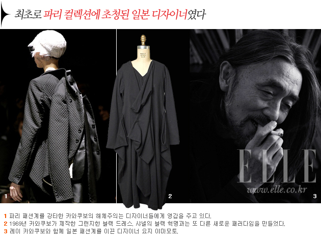 카와쿠보는 ‘꼼 데 가르송(Comme des garcons)’이란 브랜드로 일본의 패션계를 이끌며 성공적인 길을 걸었다. 그녀에게 세계 시장으로 사업을 확장할 수 있는 기회가 찾아왔다. 바로 파리 패션쇼에서 카와쿠보와 요지 야마모토를 초청한 것. 시작은 아주 작았다. 소규모의 컬렉션을 제작해 6명의 모델들에게 입혔고 쇼는 호텔 방 안에서 이뤄졌다. 쇼는 호불호가 극명하게 갈렸다. 비평가들은 비대칭 컷과 너덜너덜한 미완성의 의상들을 두고 원자폭탄의 후유증, 히로시마 시크라고 비판했다. 여성의 아름다움을 추구했던 서구 패션에 대항하는 안티 패션은 충격과 이슈 그 자체였던 것. 그러나 신랄한 비평은 곧 ‘추(醜)의 미학’으로 해석되며 새로운 패션을 구현했다. |