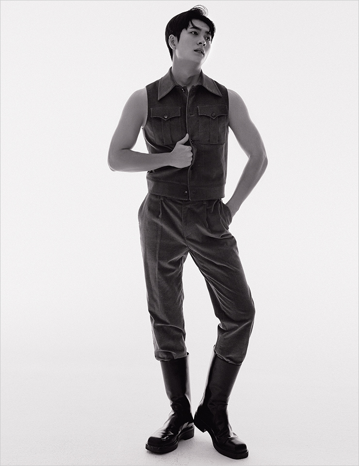 신생 채널인 ENA에서 시청률 0.9%로 시작해 17.5%로 종영하기까지 이 드라마가 신드롬적 인기를 끈 이유도 마찬가지다. 다양성에 내재한 아름다움이나 사회적 약자를 콘텐츠로 재현할 때의 윤리적인 태도, 젠더와 장애 이슈에 대한 사회적 논의를 끌어올린 것도 물론이지만 우영우라는 캐릭터를 맡기까지 1년여의 시간을 고민하고 “누군가에게도 상처를 주고 싶지 않았다”는 마음으로 임한 주인공 박은빈의 태도나 이날 인터뷰에서 “보이는 게 독이 될 것 같은 캐릭터였다. 나 여기 있다고 주장하기보단 영우의 뒤편에 되려 존재가 빛나는 친구”라고 밝힌 강태오의 고민이 모이니 사랑받을 수밖에. 국내 최초로 성인 자폐 여성을 주인공으로 삼은 이 드라마가 유독 흥미로웠던 점은 로맨스를 그리는 방식이다. 특히 이준호 씨는 시청자가 우영우를 바라보듯 응원하는 남주였다. ‘당신의 편을 들어줄게요’라는 태도보단 “변호사님 같은 변호사가 내 편 들어주면 좋겠다”고 말하는 남자. 키스가 서툰 우영우가 이를 부딪치지 않을 방법을 묻자 “입을 조금 더 벌려주시면…”이라고 설명하는 남자. 사랑을 강요하거나 시혜적이지 않은 태도로 지켜보고 경청하는 남자 말이다. 강태오는 여느 로맨스와 달리 변호사로서 우영우를 존경하고 경외하는 마음으로 이 로맨스에 접근해 ‘변호사님’이라는 존칭을 끝끝내 잃지 않았다. ‘태오, 가지 마오’라는 말이 인터뷰 내내 튀어나올 뻔했지만, 뜨거운 인기를 뒤로하고 입대를 앞둔 상황이 섭섭치 않느냐고 물었다. 그는 자신 있게 웃었다. “잘 차려진 밥 한 끼를 먹고 갈 수 있어 든든하고, 자신 있게 인사를 건네고 갈 수 있어 다행”이라며. 이 든든한 우영우의, <엘르>의 남자는 지금 중대장 훈련병으로 선발됐다. 이준호 씨, 제대 후에도 <엘르>와 먼저 만나기로 약속한 것 잊지 않았죠?