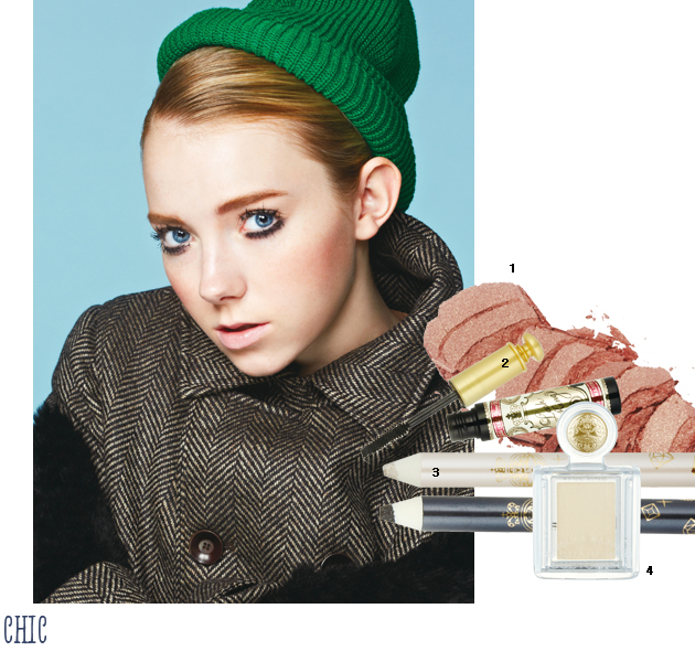 코트. A.P.C. 퍼 장갑. H&M. 모자. 에잇세컨즈. 1 얼굴의 입체감을 살려주는 치크 커스터마이즈 RD255. 3g. 1만3천원. 2 5밀리미터의 익스트림 롱 파이버가 함유된 래쉬 킹 BK999. 6g. 1만8천원. 3 글리터가 가미된 선명한 발색의 주얼링 펜슬 BK901, 71. 각각 0.8g. 1만원. 4 발색이 자연스러운 섀도우 커스터마이즈 BE121. 1g. 8천원. 모두 마죠리카 마죠르카. |