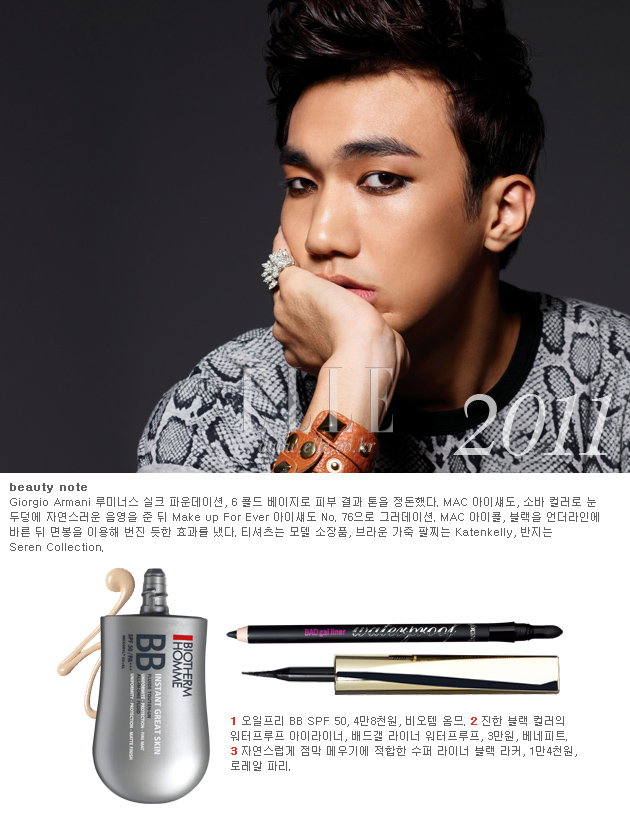 2011 pretty boys 처음엔 그저 '무대 메이크업' 정도려니 했다. 아이돌이 장악한 가요계. 화려한 패션에 짙은 스모키 메이크업을 하고 한껏 ‘끼’를 부리는 아이돌 소년들의 모습은 아직 젊다는 에디터에게도 참 생경했다. 하지만 받아들이는 대중은 달랐다. 홍대, 신사동, 명동 거리와 주말의 클럽을 메우고 있는 남자들은 꽤 능숙한 솜씨로 완성한 메이크업을 굳이 숨기려 들지 않았다. 그게 좀 더 섹시하고 멋져 보인다고 생각하니까. “눈 아래 점막을 펜슬로 살짝 그리거나 눈썹만 그려줘도 인상이 확 달라보이죠. BB크림이야 워낙 대중화돼 있고요.” 몇 차례 남자 아이돌 그룹과 촬영을 진행한 바 있는 메이크업 아티스트 오미영의 얘기. |